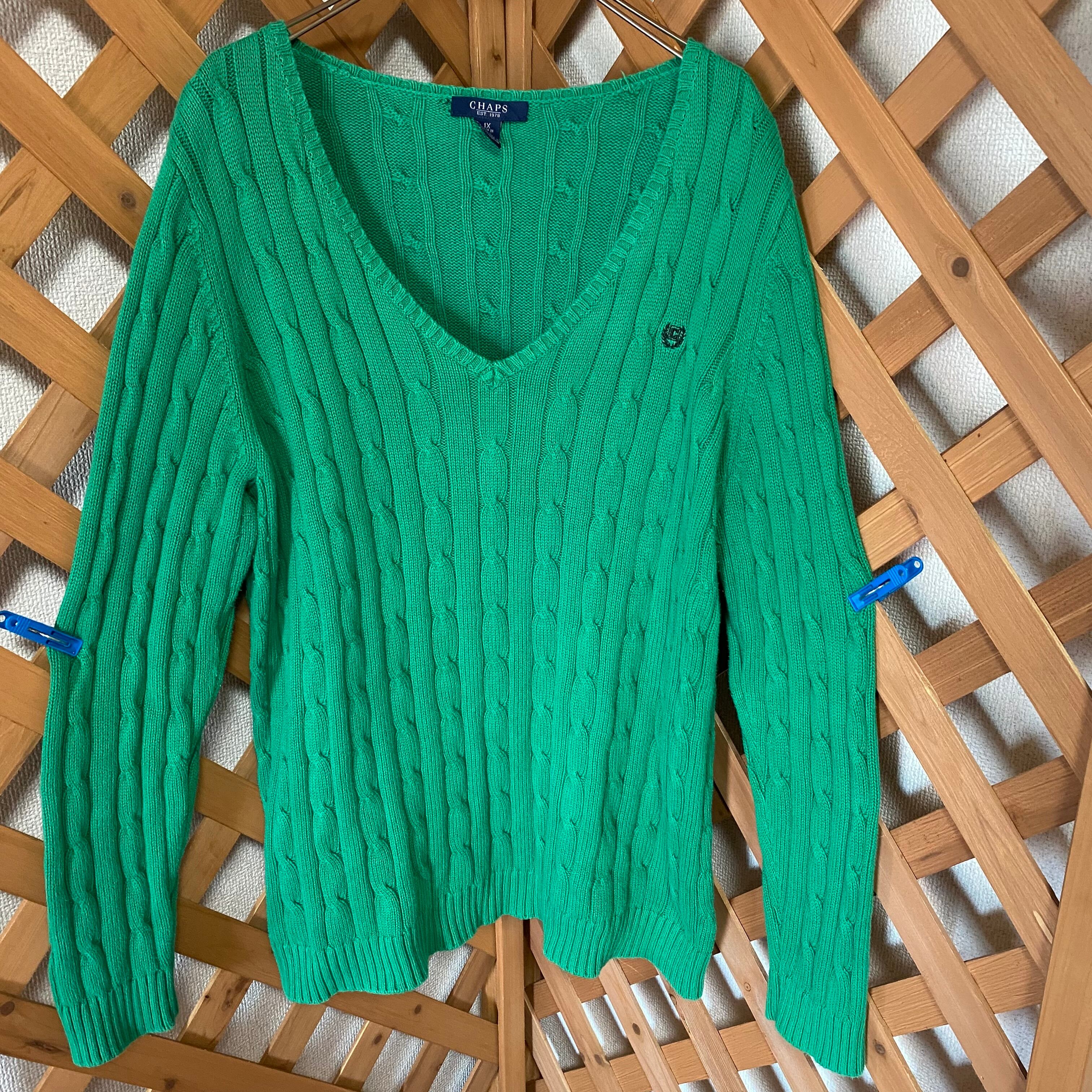 CHAPS チャップス グリーンニット 薄手 春服 古着 アースカラー